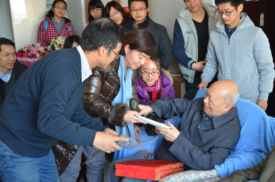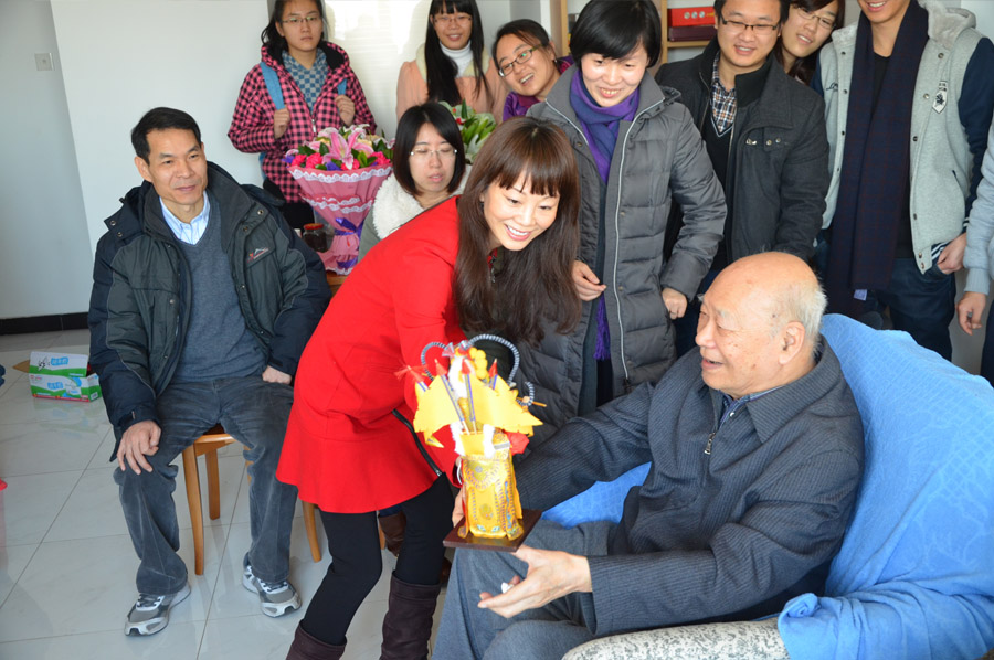 2014年12月11日是学院吴相钰老师90岁生日。当天上午,原北京大学校长许智宏教授、北京大学生命科学学院瞿礼嘉、白书农、范六民、董春霞等多位老师与学院校友尊师基金代表陈菁、周玲、刘超以及十余名在校研究生、本科生等一道,来到五道口嘉园吴相钰老师家中,为其庆生。