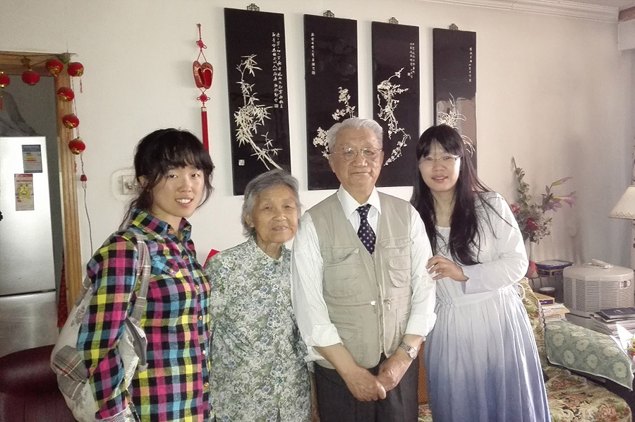 2015年4月28日,生命科学学院郝雪梅老师与学院研究生胡莉莉、高雪凌同学一道,代表学院并校友尊师基金前往蔡益鹏老师位于蓝旗营的家中为其庆祝90岁大寿。