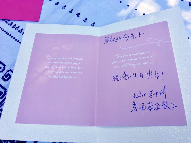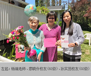 2017年端午佳节来临之际,恰逢现居美国旧金山地区的杨端老师八十大寿。 尊师基金执委廖晓伶校友及孙实笏校友来到杨老师家中,为其庆生,并代表尊师基金向杨老师献上了她最爱的栀子花一盆及鲜花一束,及各个年龄段的学生们共同写下的生日贺卡。杨老师和老伴赵明蓟老师初识于未名湖畔,为我院54级校友,均曾长期任教于生命科学学院。二老为不远千里仍能收到基金的生日祝福感到十分欣慰。我院校友随科学的足迹遍布全球,这也是基金首次走出国门,在海外为老师庆生。