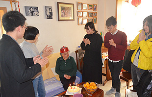 上午10时许,师生一行来到李老师家。李老师热情地迎接大家入门。虽已80高龄的她,依然精神矍铄、笑容饱满,家里家外,都是一把好手。李老师热情地招待大家吃糖和水果。一番寒暄后,老师和同学们为李老师的蛋糕上插上了8根蜡烛,寓意着80大寿以及我们对老师的美好祝福。在一阵欢声笑语和祝福的掌声中,李老师许愿并与大家分享了蛋糕。由于当日大风降温,李老师还特意煮了醪糟让大家暖身。